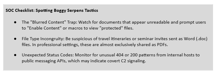 Once a target opens the document, they typically see a blurred, "protected" file asking them to enable content to view it. The moment they click, a Visual Basic Application (VBA) macro executes and fetches the second-stage payload, while a fixed (and legitimate looking) document appears on screen. The malware has already beaconed back to a Telegram bot or C2 server. This isn't automated spam. It's manual, focused espionage
