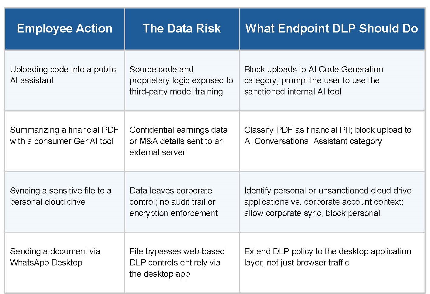 This post covers three critical endpoint vectors where data is most at risk, what effective DLP controls look like for each, and a practical breakdown of five common scenarios where employees inadvertently create exposure.
