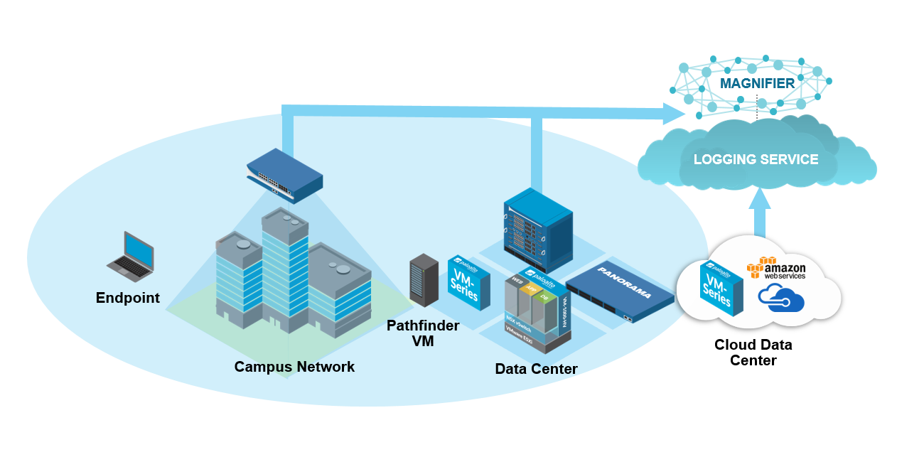 Magnifier leverages Palo Alto Networks Logging Service for efficient, scalable cloud-based log storage. It provides an operationally efficient and cost-effective way to store the large volumes of data needed for behavioral analytics.