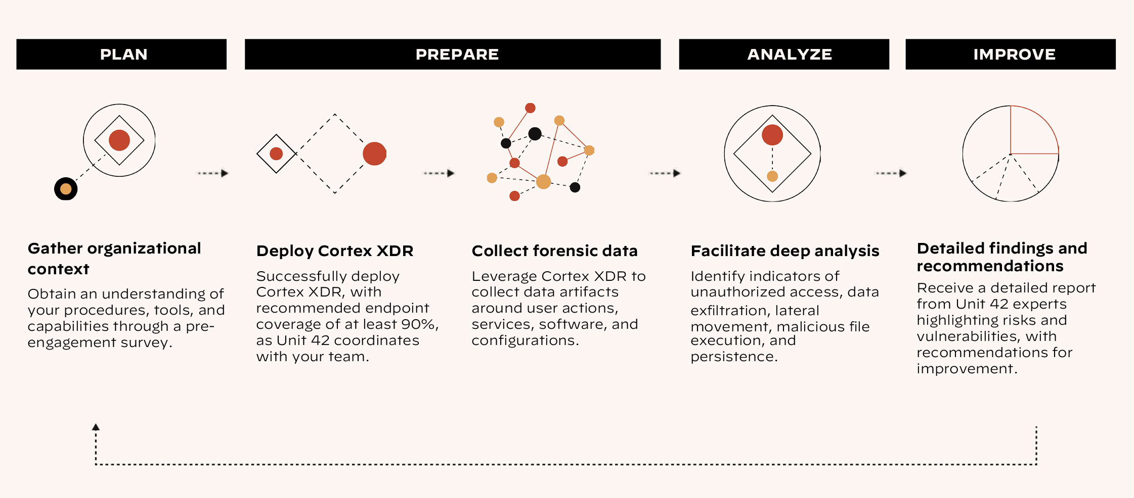 We’ll partner with you to collect the right data and search for precise indicators to uncover the most dangerous and unknown threats and exploited vulnerabilities across your infrastructure. You will also uncover nonmalicious activity that increases cybersecurity risk but ordinarily slips under the radar, such as local administrator accounts, potentially exposed credentials, and suspected shared or default accounts. With this knowledge, you will gain recommendations that are prioritized and aligned with your overall security strategy. Recommendations will be prioritized by criticality and level of difficulty, to help organize your remediation efforts. Unit 42 delivers a holistic view of your attack surface and helps you understand how to limit your exposure so you can achieve peace of mind.